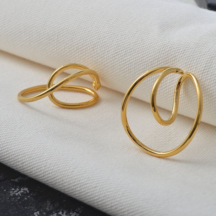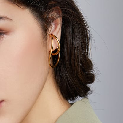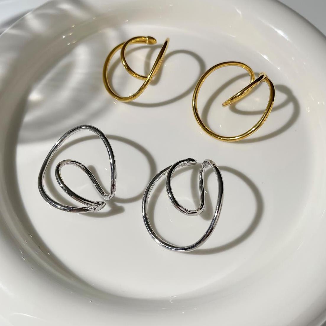 有機的で不規則な曲線が織りなす、アート感覚の変形デザインイヤーカフ。