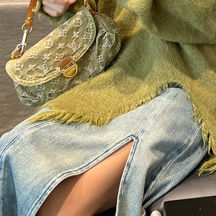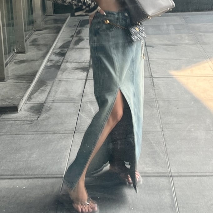 大胆なスリットデザインがオシャレなデニムスカート。
