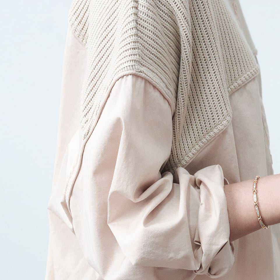一枚で着てもレイヤードしても様にな理、胸元に施された細やかなプリーツが立体的な陰影を生み出します。