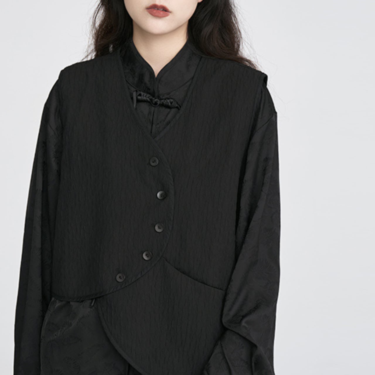 一枚で四通りの着こなしが楽しめる、革新的なデザインベストです。