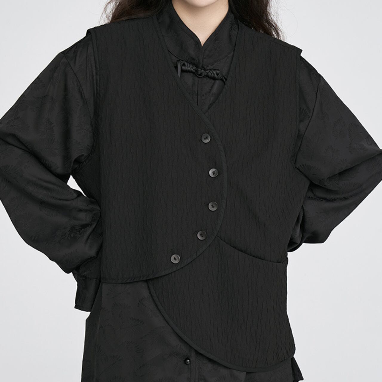 フロントのボタン配置も非対称で、前後どちらを前にしても様になる遊び心溢れるデザインに仕上げました。