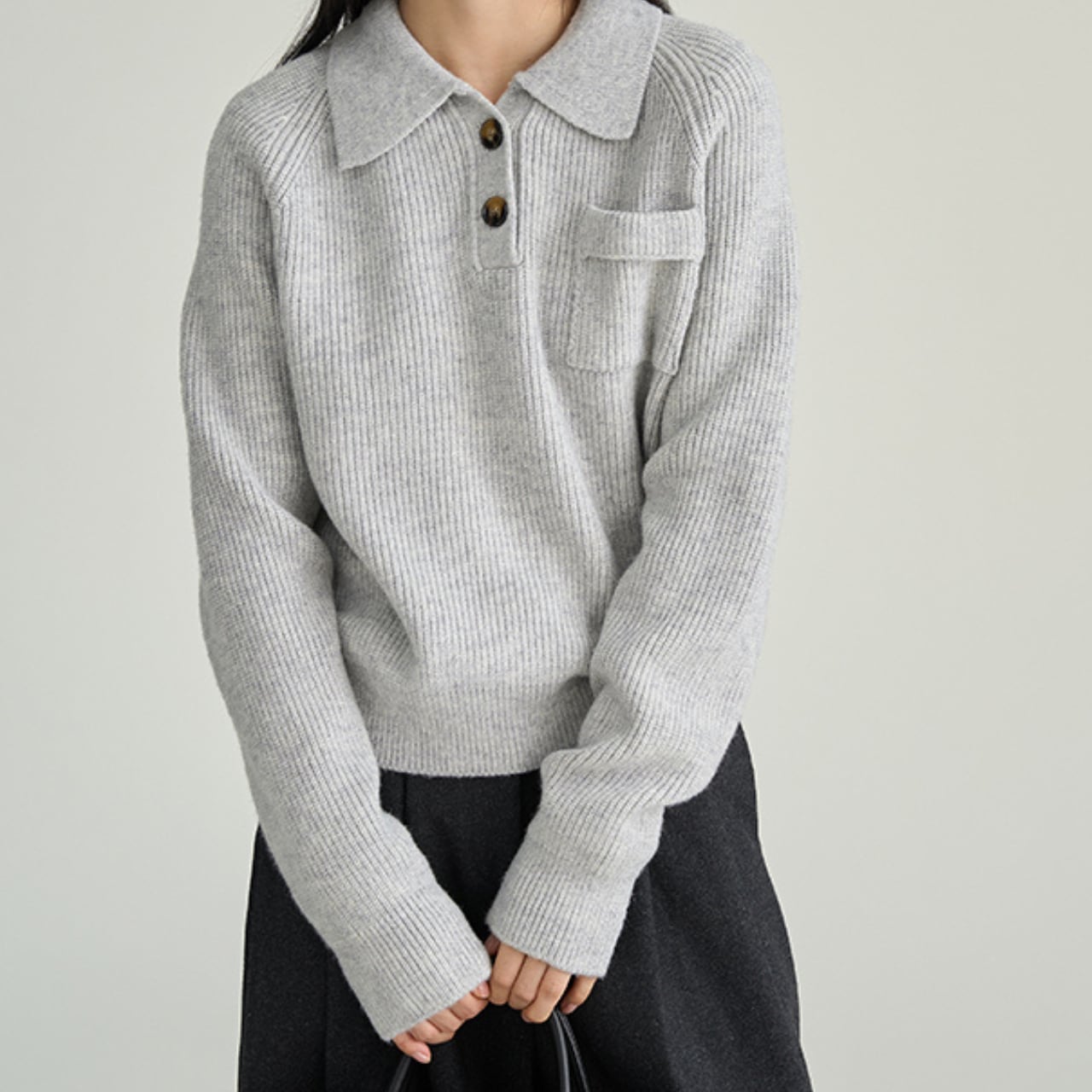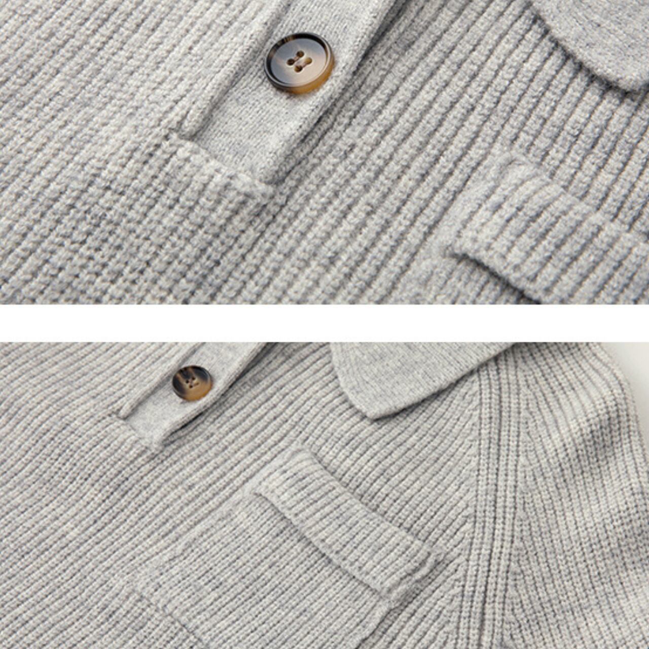 ハーフボタンデザインのポロニット。