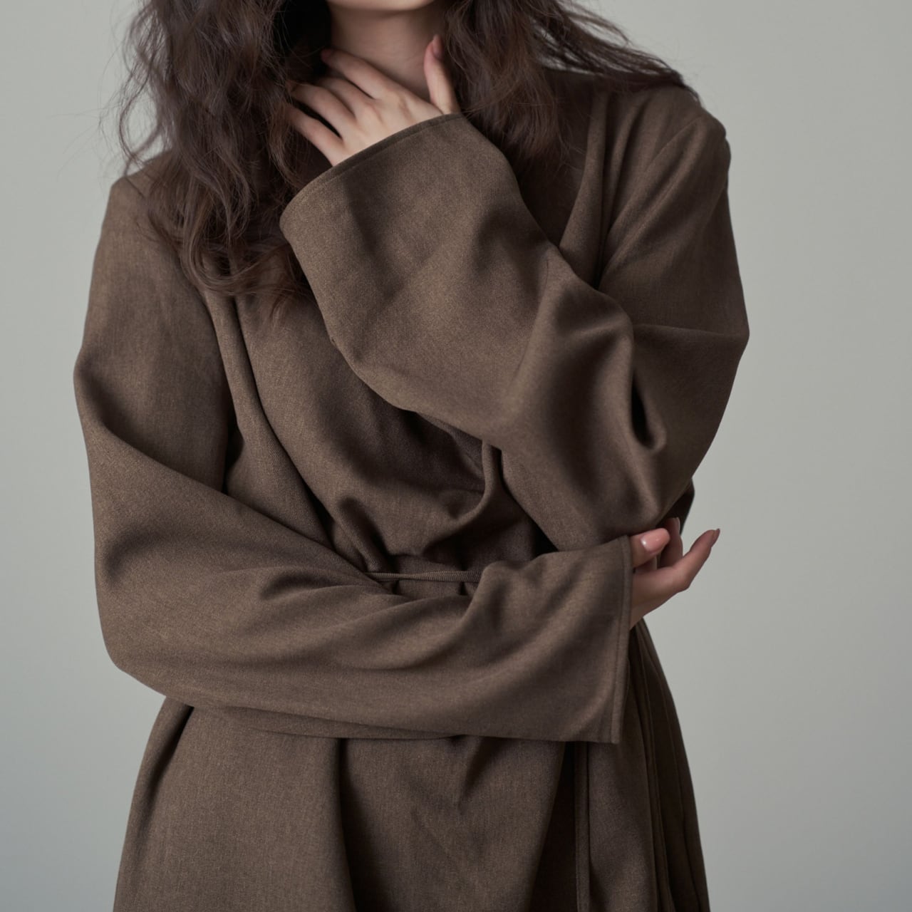 ルーズなカラーネックデザインが特徴のロングワンピース。