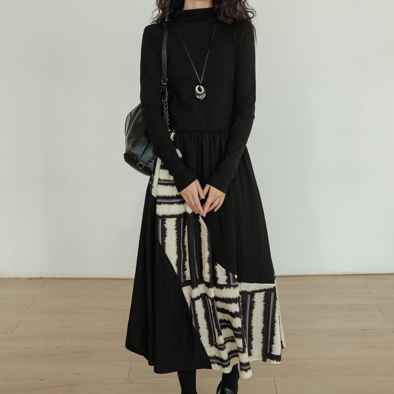 まるで墨絵のような繊細なタッチと、ダイナミックな筆致が融合した、唯一無二のデザインワンピースです。