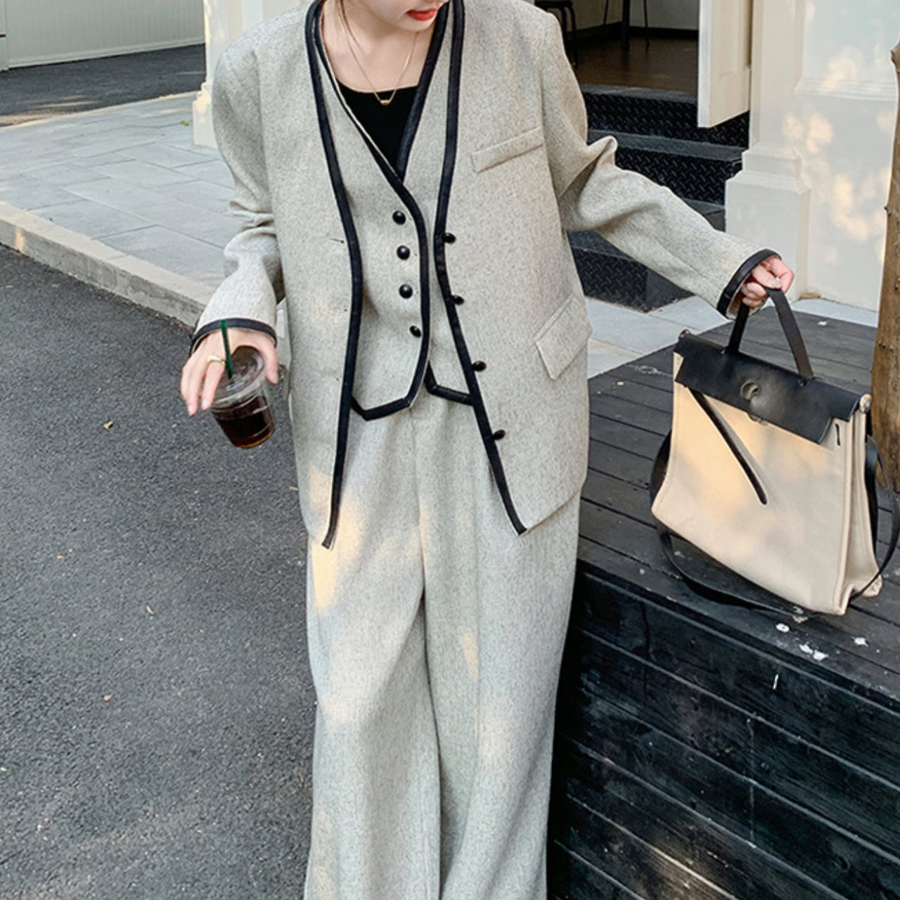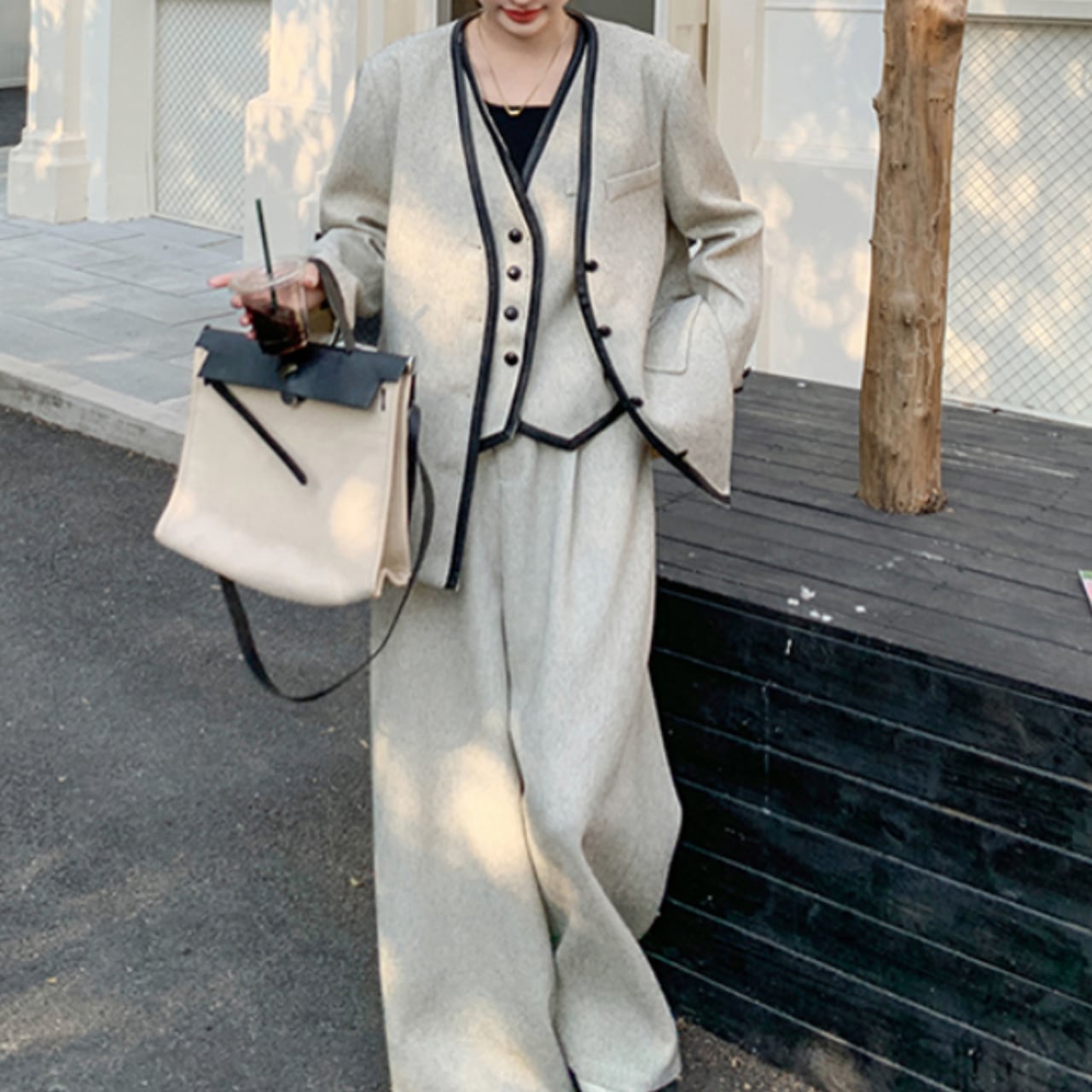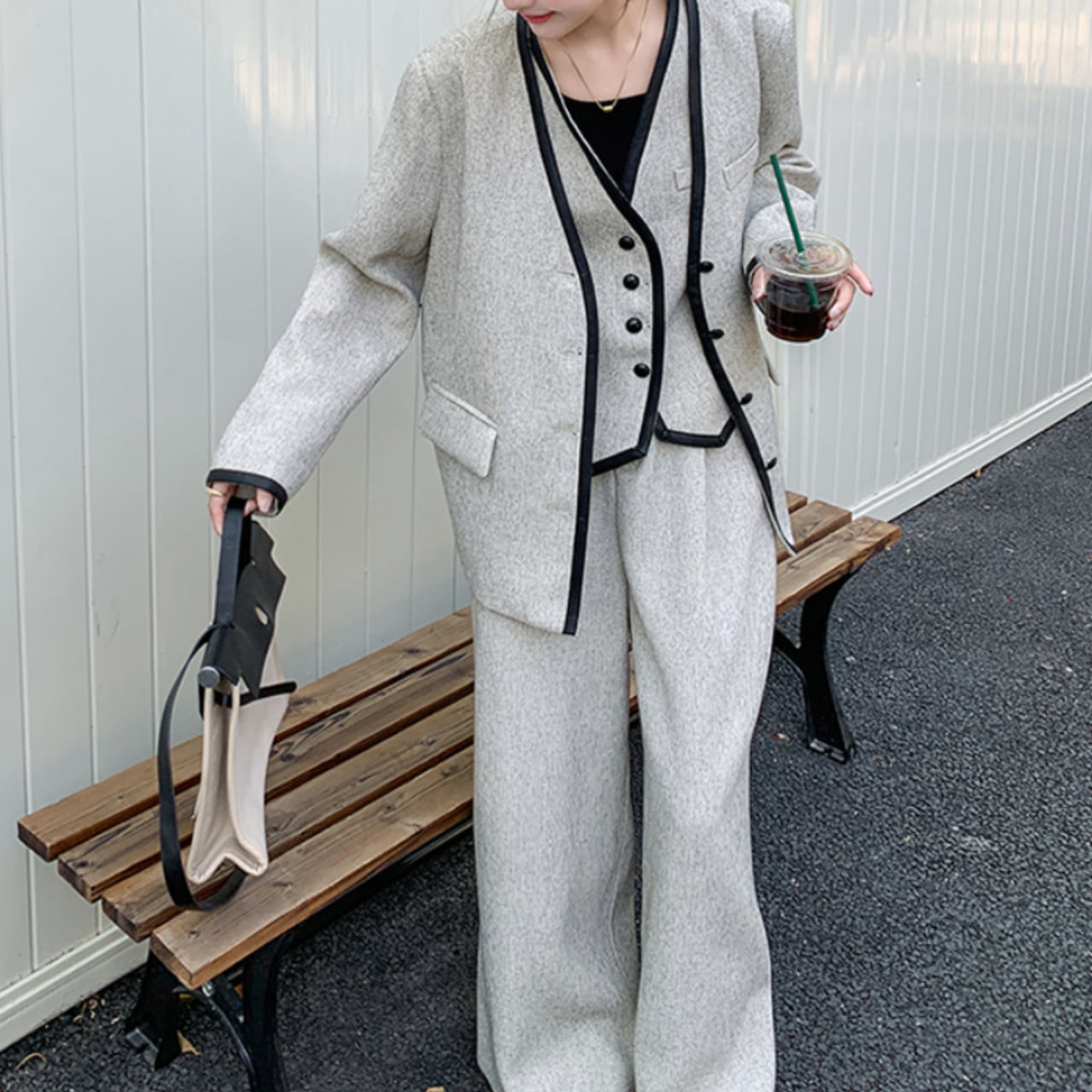 ジャケット、ベスト、パンツの3点が織りなす、無限のスタイリング可能性。それぞれ単体でも美しく、組み合わせることで更なる洗練を生み出すセットアップです。