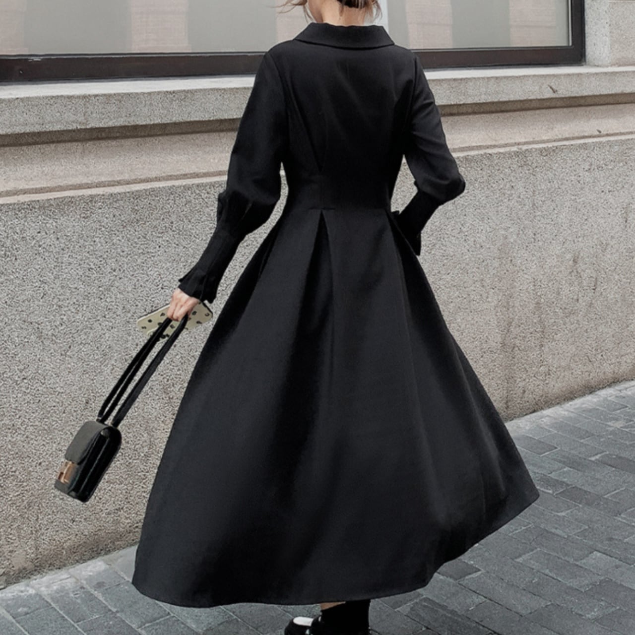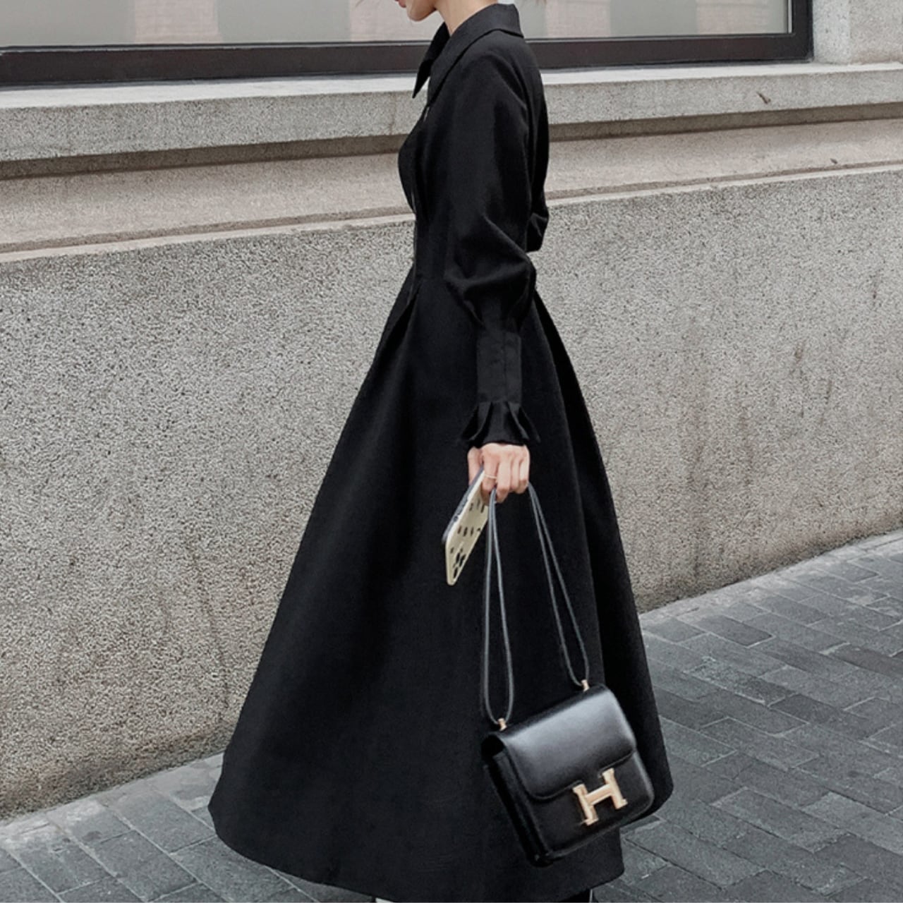 開け方ひとつで印象をガラリと変える機能美と、洗練されたロング丈の美しさが融合した、大人の女性にふさわしい一枚。