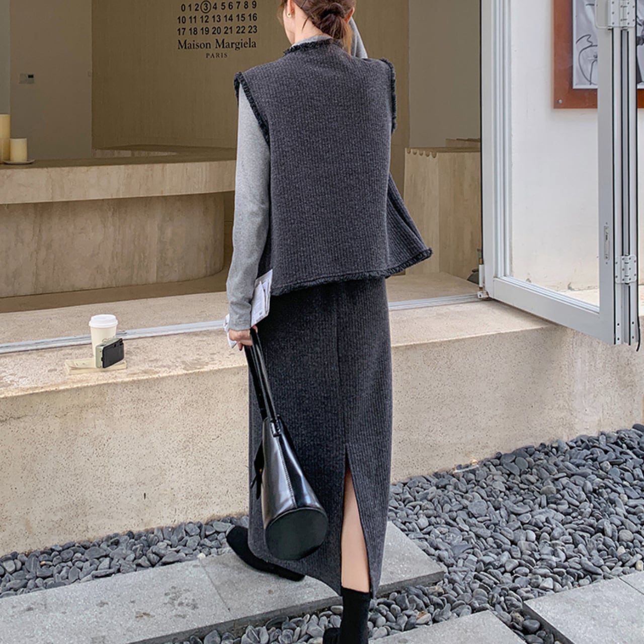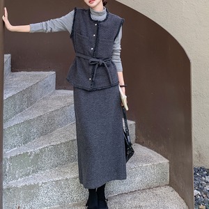 シャツ&ベスト&スカートのスリーピースセットアップ。